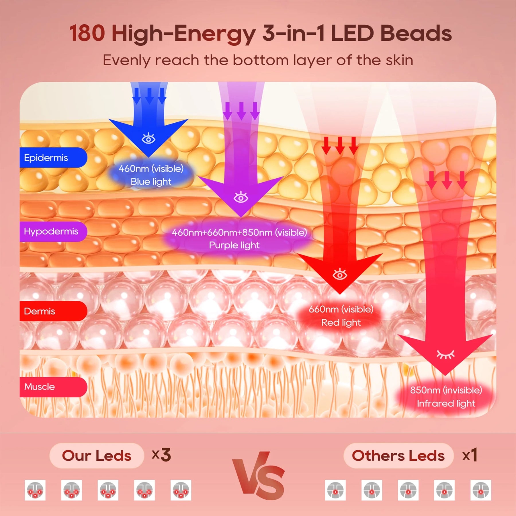 【180 High Energy Lamp Beads】With an irradiation distance of < 4mm, the energy coverage is large and the energy is more dense. The high-energy light can evenly reach the bottom layer of the skin, helping to improve the skin condition of the entire face. You can enjoy light therapy for face while reading, doing yoga, exercising, and entertaining, freeing your hands and ready for use at any time.